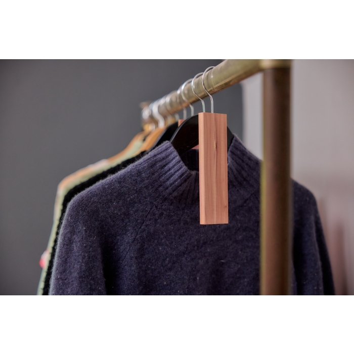 Cederträet avger en mild och behaglig doft som inte bara stöter bort insekter utan även håller garderoben fräsch och väldoftande. -