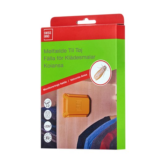 Limfällan SWISSINNO (naturlig kontroll) användes för att på ett tidigt stadium upptäcka klädes mal angrepp (Tineola bisselliella). Dessa mal har en vingbredd på ca. 14 mm. De främre vingarna är lysande ljus gula och de bakre vingarna något ljusare. Klädes mal har en förkärlek för kläder, ylle mattor, dukar, möbelstoppningar etc. Fällan arbetar efter principen att hanen attraheras av det naturliga ämnet (feromon) och fångas sedan i limfällan.
