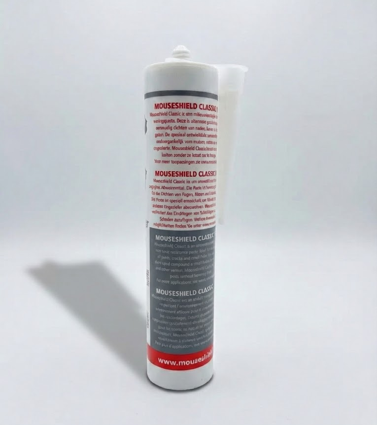 MouseShield har en unik formula som gör den mycket effektiv mot möss och råttor. Vanliga tätningsmedel kan lätt gnagas igenom eftersom de är mjuka men ändå tillräckligt hårda för att vässa tänderna på.